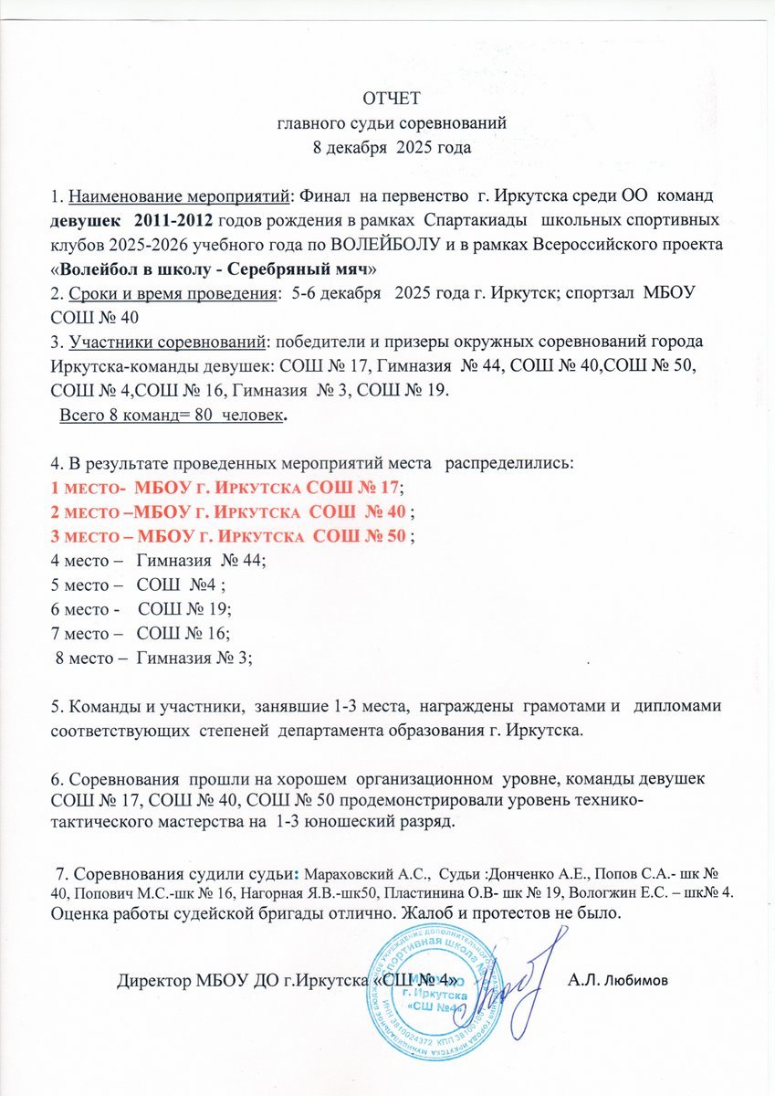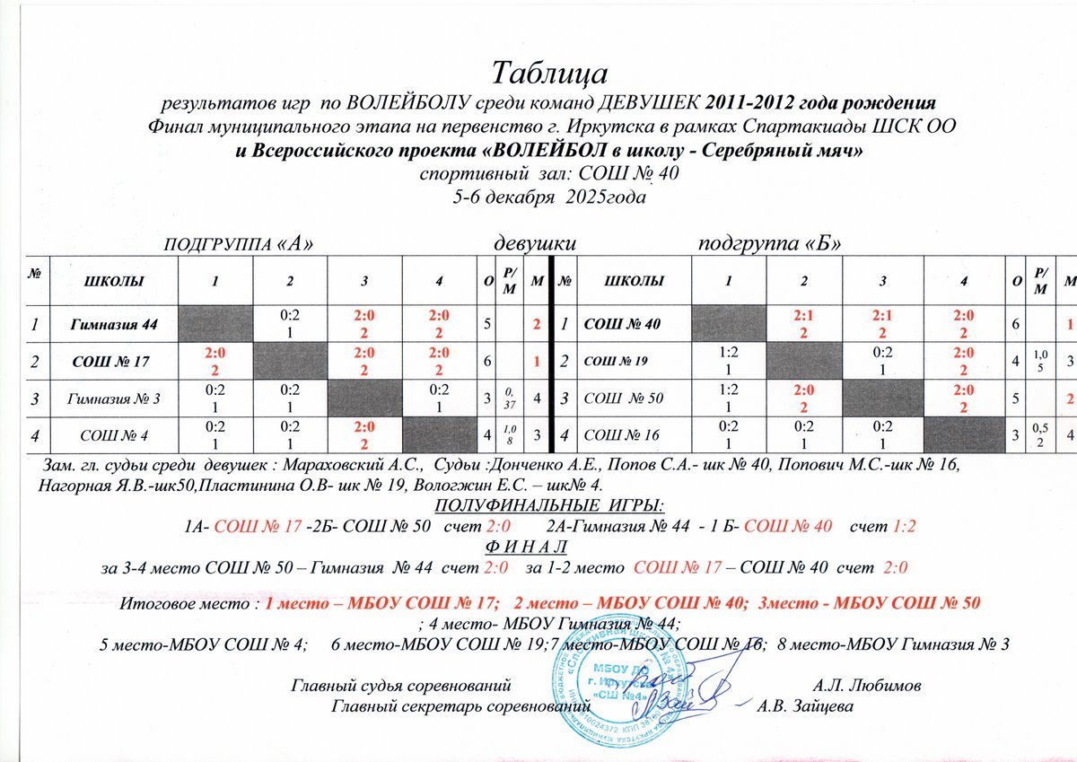 Команды девушек, занявшие 1-4 места, завоевали право представлять город Иркутск на областных соревнованиях как победители округов по волейболу «Серебряный мяч» Всероссийский проект «Волейбол – в школу» с 3 по 8 марта 2026 года в г. Иркутске.