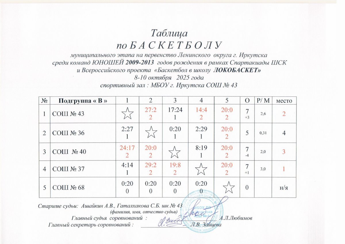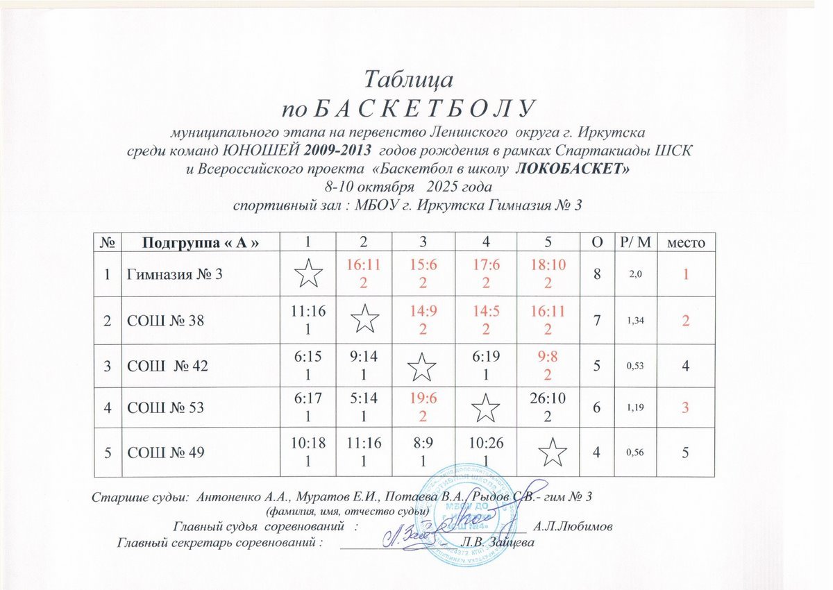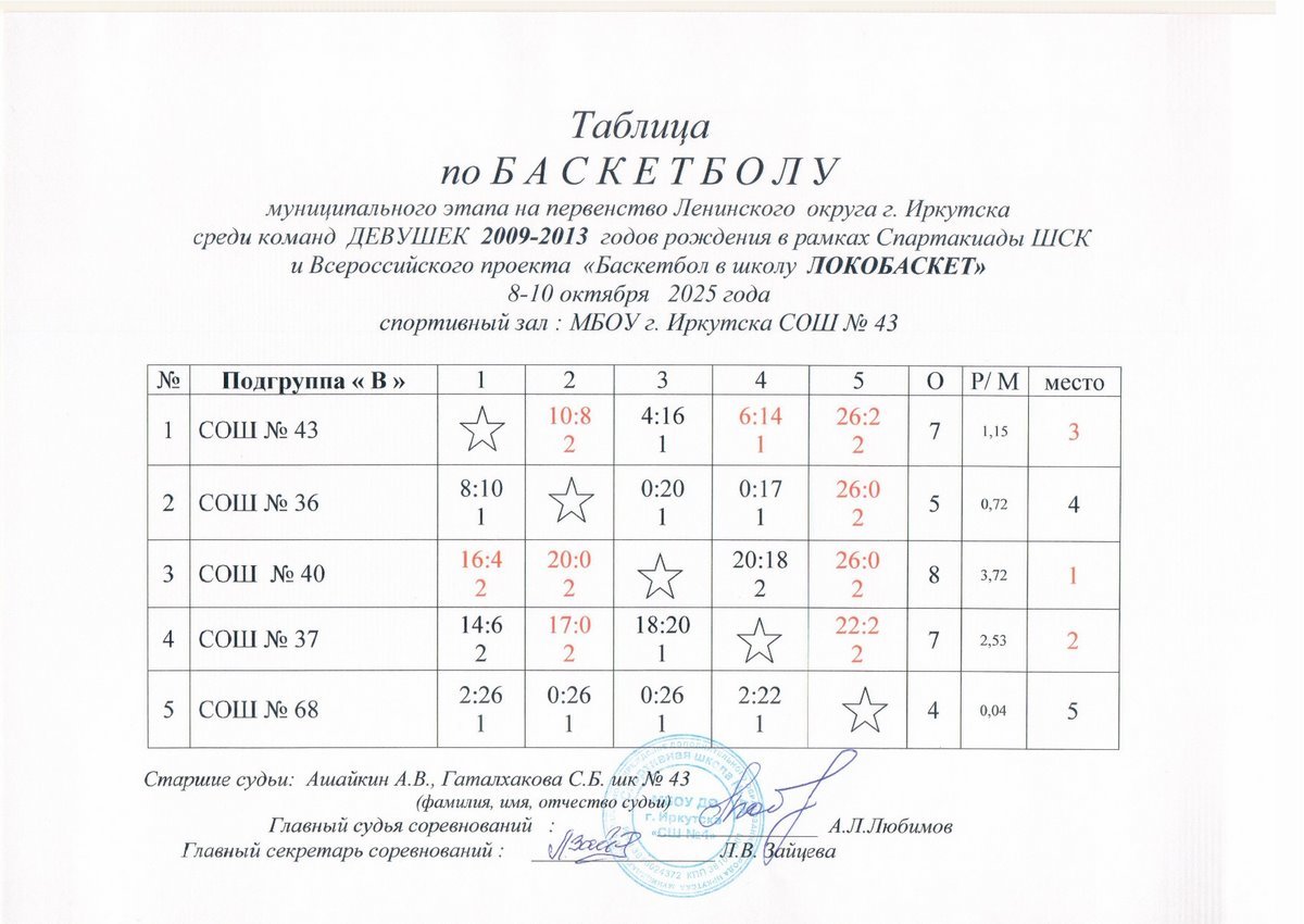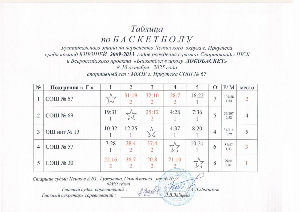 В Ленинском округе города Иркутска в период с 8 по10 октября 2025 года проводились соревнования по БАСКЕТБОЛУ среди школьных спортивных клубов в рамках Спартакиады г. Иркутска 2025-2026 учебного года. В соревнованиях принимали участие сборные команды школ (юноши и девушки 2009 -2013 годов рождения). Игры проводились на базах спортивных залов школ № 67,7,Гимназия № 3,43