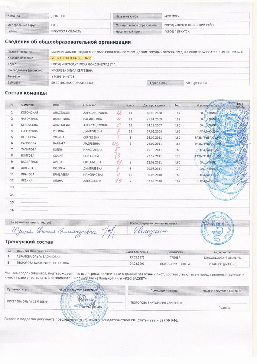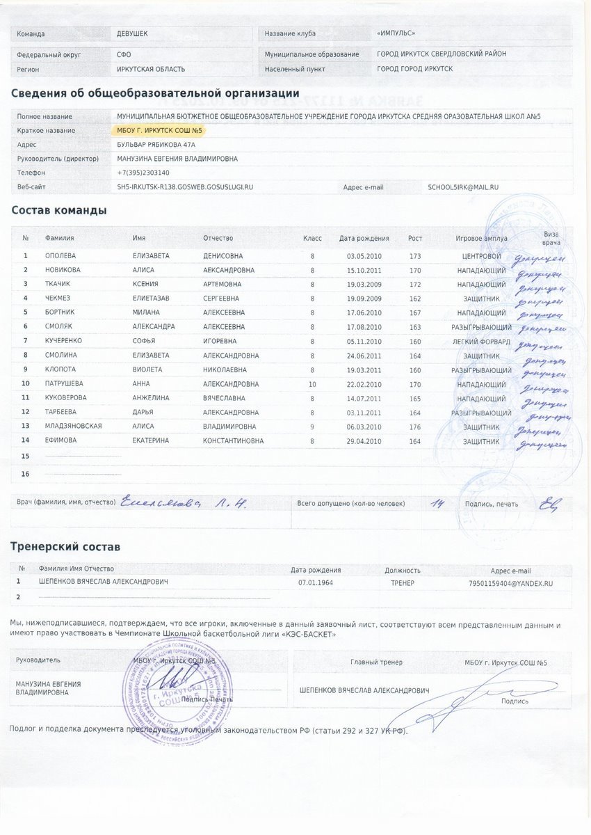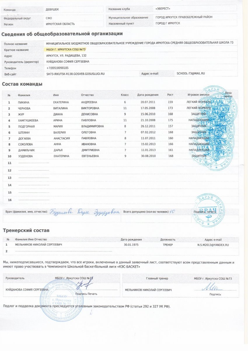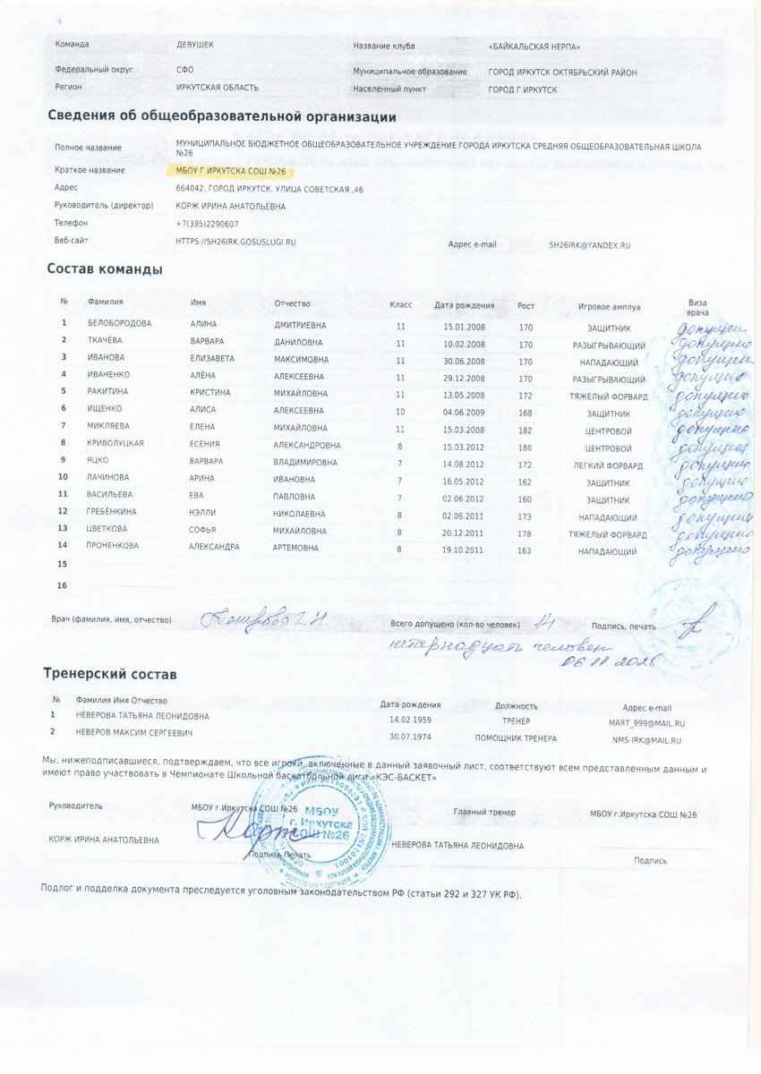 В городе Иркутска в период с 10 по 12 ноября 2025 года проводились соревнования по баскетболу среди школьных спортивных клубов в рамках Спартакиады г. Иркутска 2025-2026 учебного года и Всероссийского проекта «Баскетбол в школу – ШБЛ КЭС-БАСКЕТ» ДИВИЗИОН ЦЕНТР».