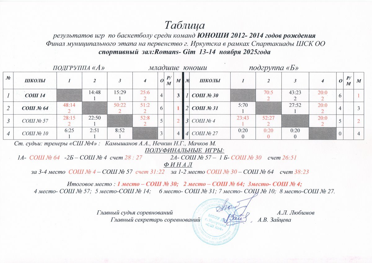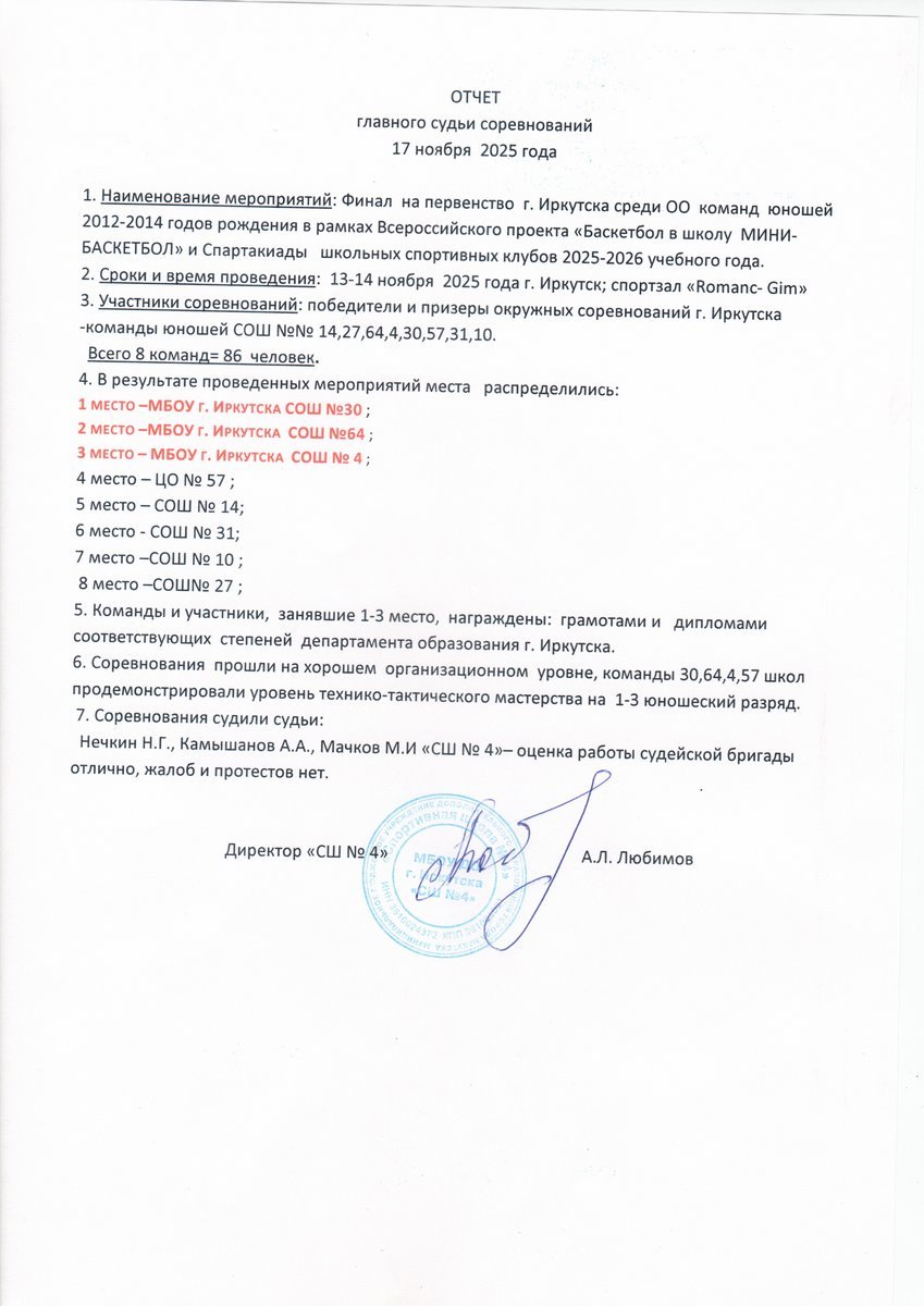 Команды, занявшие 1-3 места, награждены грамотами департамента образования г. Иркутска. Администрация «Спортивной школы № 4» благодарит участников финальных игр на первенство г. Иркутска по мини-баскетболу и особенно отмечает подготовку команду по баскетболу СОШ № 30.